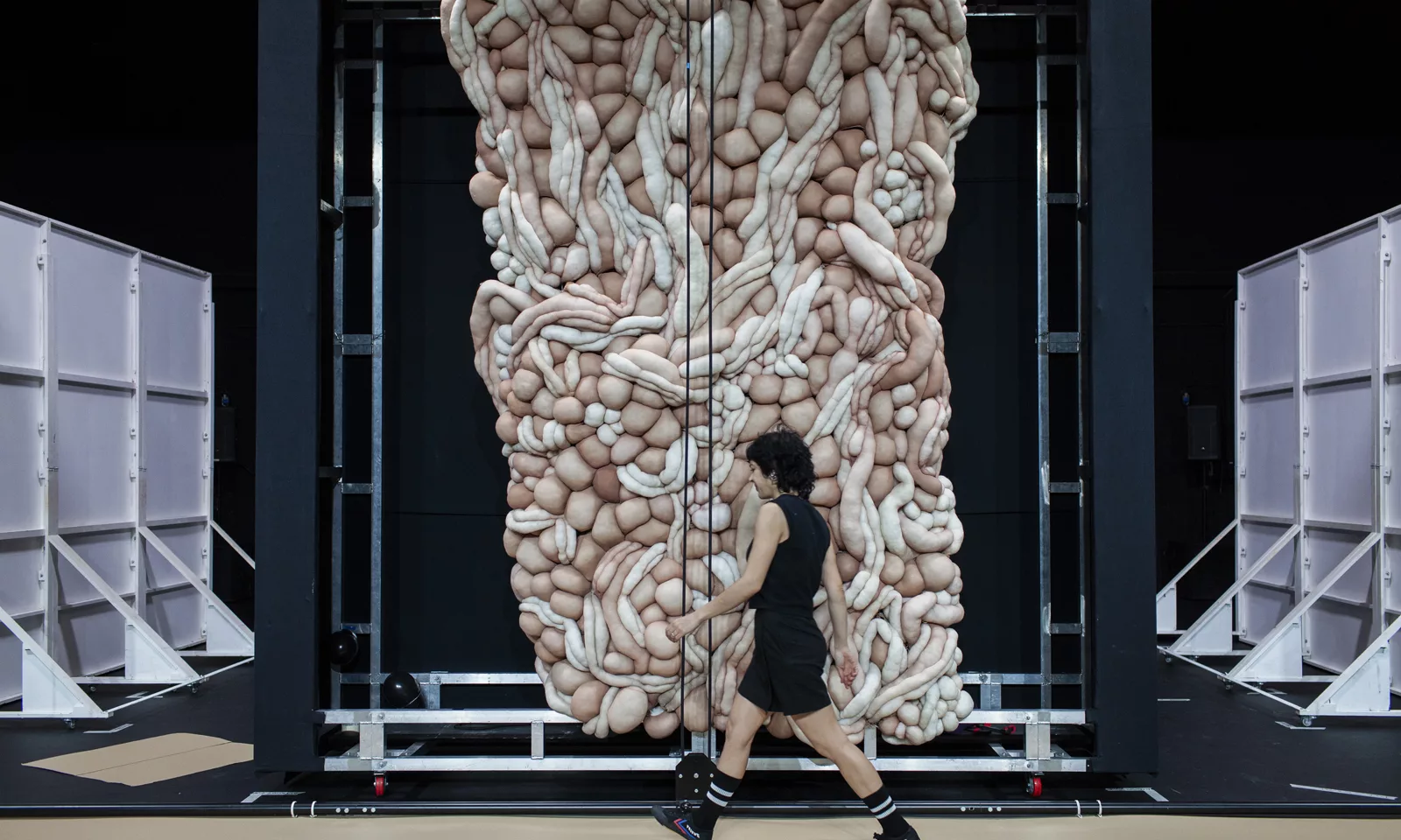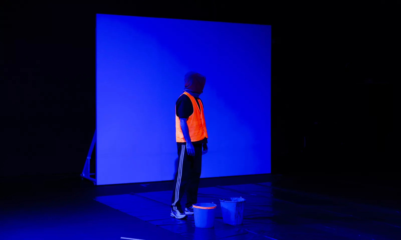 Mais c’est précisément là que l’affaire se complique, et que l’on comprend que la magie annoncée ne prendra pas exactement la forme espérée. Car nous n’assistons pas tant à un spectacle qu’à la projection d’un film dont la scène serait le simple écrin. Quelques machinistes traversent mollement l’espace, lunettes noires vissées sur le nez, cigarette mimée au coin des lèvres, pas vraiment assurés. Ils déplacent des écrans, puis peignent avec une méticulosité presque punitive une palissade, au rouleau, sans rythme, sans dramaturgie, comme s’ils voulaient épuiser notre patience. Un dispositif Beckett sans tension.