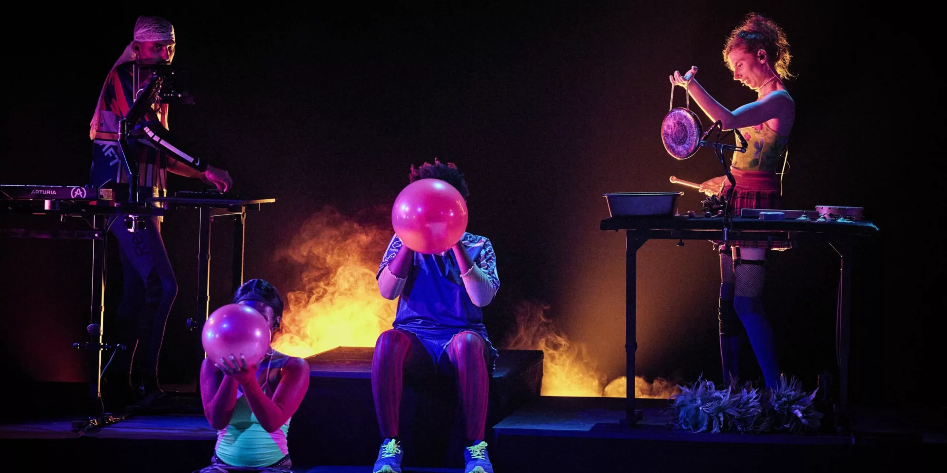 C’est donc moins une pièce qu’un concert auquel nous sommes conviés. Un concert étiré, ralenti, délicieusement suspendu, comme s’il obéissait à un commandement de John Cage : « si tu peux le faire en deux minutes, fais-le en quatre ». Une comédie musicale hippie chic new age queer qui glisse tranquillement vers le cours de fitness doux, le rituel communautaire ou la prière profane. Une chorale de fées radicales (oui, fées, parce que leur puissance tient moins à leur voix qu’à cette façon de faire apparaître le monde en chantant) qui juxtaposent, sans hiérarchie apparente, les éléments de l’étant passé, présent et à venir. Rien n’est oublié. Tout est accueilli. Et le public n’est jamais loin de chanter avec elles ; il ne manque réellement que les textes sur les prie-Dieu pour qu’on puisse suivre les litanies comme on suit un chant grégorien.